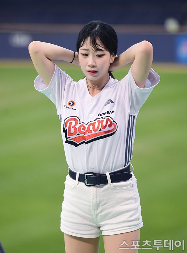 2025 신한은행 SOL Bank KBO리그 NC 다이노스와 두산 베어스의 경기가 14일 서울 잠실야구장에서 열렸다. 두산 치어리더 김자영이 신나는 응원을 선보이고 있다. 2025.08.14. [스포츠투데이 권광일 기자 sports@stoo.com]