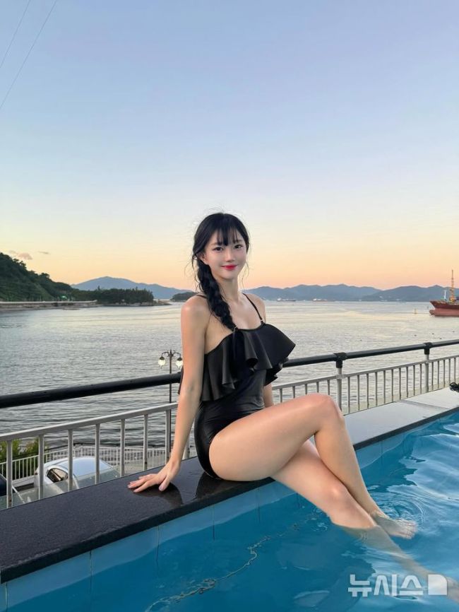 [뉴시스] 치어리더 조다정. (사진=인스타그램) [서울=뉴시스]정풍기 인턴 기자 = 치어리더 조다정(28)이 아찔한 각선미로 눈길을 끌었다. 최근 조다정은 자신의 인스타그램에 "머리하기 전 잔머리 폭탄"이라는 짧은 멘트와 함께 여러 장의 사진을 공개했다. 공개된 사진에서 조다정은 전남 여수시의 한 야외 수영장 가장자리에 앉아 휴가를 만끽하고 있다. 해당 사