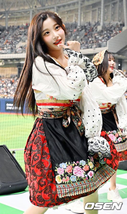 9일 서울 구로구 고척스카이돔에서 ‘2025 NAVER K-BASEBALL SERIES’ 대한민국 야구 대표팀과 체코 야구 대표팀의 평가전이 열렸다. 한국은9일 2025 K-베이스볼 시리즈 체코 대표팀과의 경기에 이어 오는15일과 16일 양일에 걸쳐 도쿄돔에서 일본 대표팀과 2경기를 치른다. 한국 이주은 치어리더가 체코 전통 의상을 착용하고 공연을 펼치고
