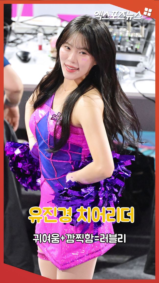 16일 오후 인천 부평구 삼산월드체육관 열린 '진에어 2025-2026 V-리그' 흥국생명과 정관장의 경기, 유진경 치어리더가 열띤 응원을 선보이고 있다. 김한준 기자 kowel@xportsnews.com