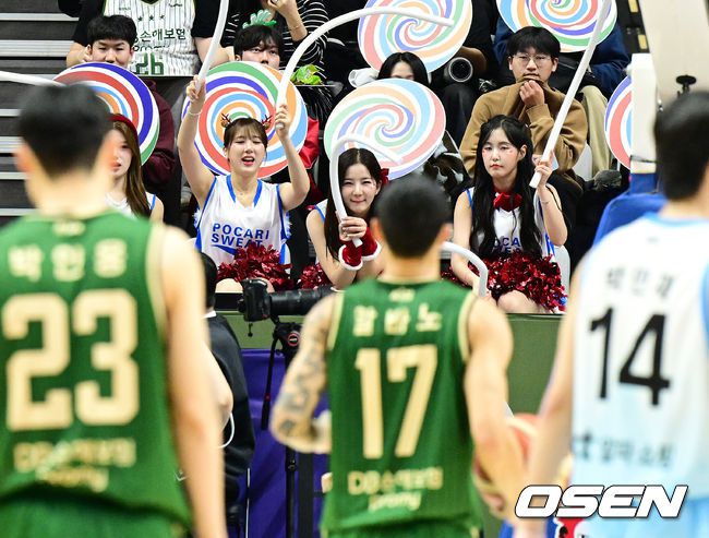 19일 오후 수원 KT 소닉붐 아레나에서 2025-2026 LG전자 프로농구 수원 KT와 원주 DB의 경기가 열렸다. KT는 11승 11패(6위), DB는 12승 9패(4위)를 기록중이다.KT 치어리더들이 DB 알바노의 자유투를 방해하고 있다. 2025.12.19 /jpnews@osen.co.kr