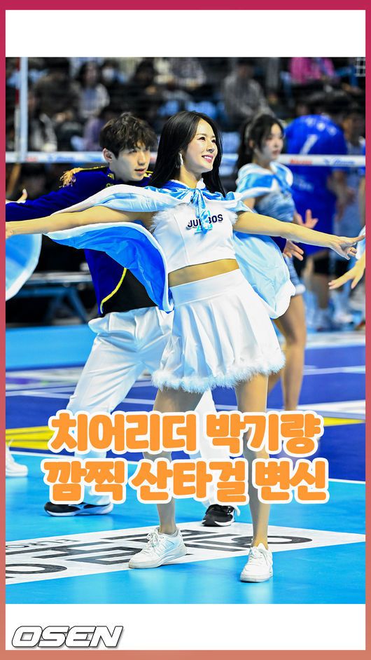 대한항공 치어리더 박기량이 지난 19일 오후 인천 계양체육관에서 열린 진에어 2025-2026 V리그 남자부 대한항공과 한국전력의 경기, 크리스마스 특별 무대를 펼쳤다. 박기량은 야구에서는 두산 베어스, 농구에서는 서울 SK 나이츠, 배구에서는 대한항공 점보스에서 치어리딩하며 방송과 SNS를 통해 꾸준히 근황을 전하고 있다. 치어리더 박기량의 무대를 영상으