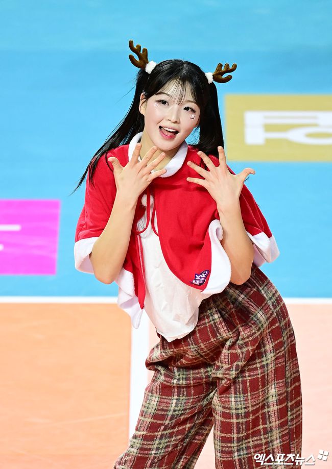 24일 오후 인천 삼산월드체육관에서 열린 '진에어 2025-2026 V-리그' 흥국생명과 IBK기업은행의 경기, 흥국생명 최석화 치어리더가 공연을 선보이고 있다. 박지영 기자 jypark@xportsnews.com