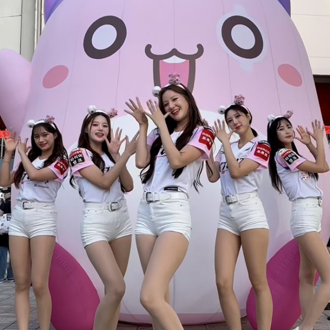 삐끼삐끼가 ‘야구 인기’ 시작이라면 KT 치어리더는 ‘흐름’을 만들었다 KT 김해리 치어리더 “아웃송 제작, 여러 과정 거쳐야 한다” 김해리 치어리더 “앞으로도 야구 인기에 보탬 되겠다” KT 치어리더 팀이 지난시즌 밈이었던 피리 춤 포즈를 취하고 있다. 사진 | 김해리 치어리더 SNS 야구장에는 화려한 선수들의 플레이 말고도 여러 가지 볼거리가 있다.