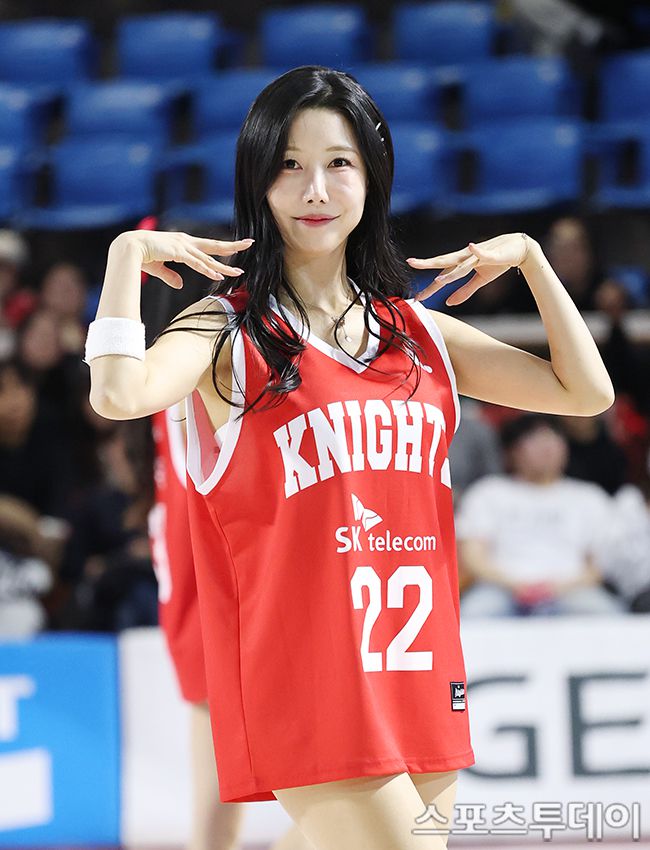2025-2026 LG전자 프로농구 서울SK와 창원LG의 경기가 15일 서울학생체육관에서 열렸다. 치어리더 류현주가 신나는 응원을 선보이고 있다. 2026.01.15. [스포츠투데이 권광일 기자 sports@stoo.com]
