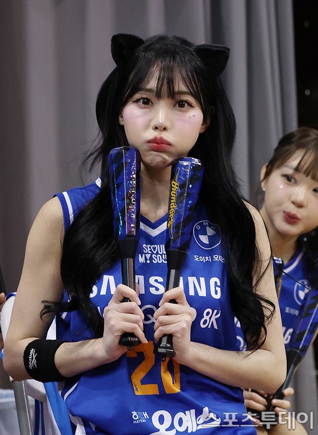 2025-2026 LG전자 프로농구 서울삼성와 대구한국가스공사의 경기가 22일 서울 잠실실내체육관에서 열렸다. 치어리더 차영현이 깜찍한 포즈를 취하고 있다. 2026.01.22. [스포츠투데이 권광일 기자 sports@stoo.com]