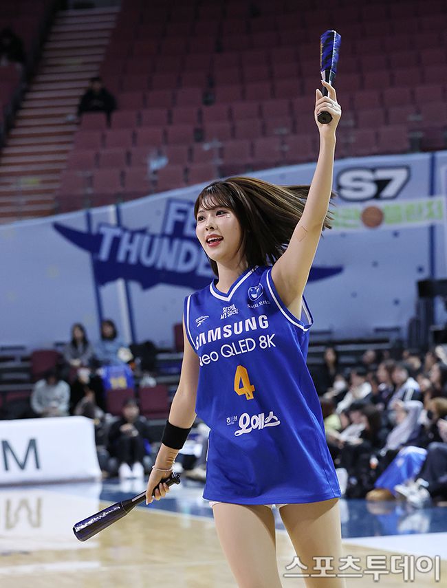 2025-2026 LG전자 프로농구 서울삼성와 대구한국가스공사의 경기가 22일 서울 잠실실내체육관에서 열렸다. 치어리더 박예은이 신나는 응원을 선보이고 있다. 2026.01.22. [스포츠투데이 권광일 기자 sports@stoo.com]