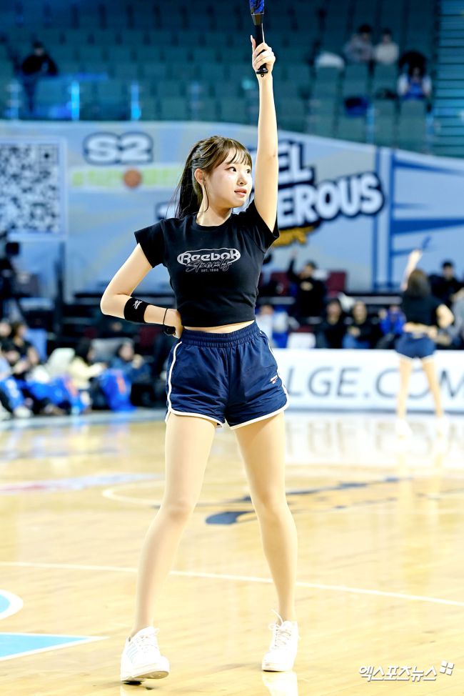 22일 오후 서울 송파구 잠실실내체육관에서 열린 2025-2026 LG전자 프로농구 서울 삼성과 대구 한국가스공사의 경기, 신서윤 치어리더가 열띤 응원을 펼치고 있다. 고아라 기자 iknow@xportsnews.com