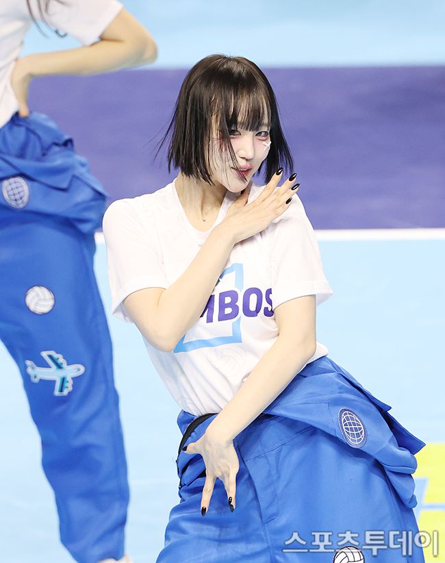2025-2026 진에어 V-리그 남자부 대한항공-우리카드 경기가 6일 인천 계양체육관에서 열렸다. 치어리더 백지혜가 화려한 댄스 공연을 선보이고 있다. 2026.03.06. [스포츠투데이 권광일 기자 sports@stoo.com]