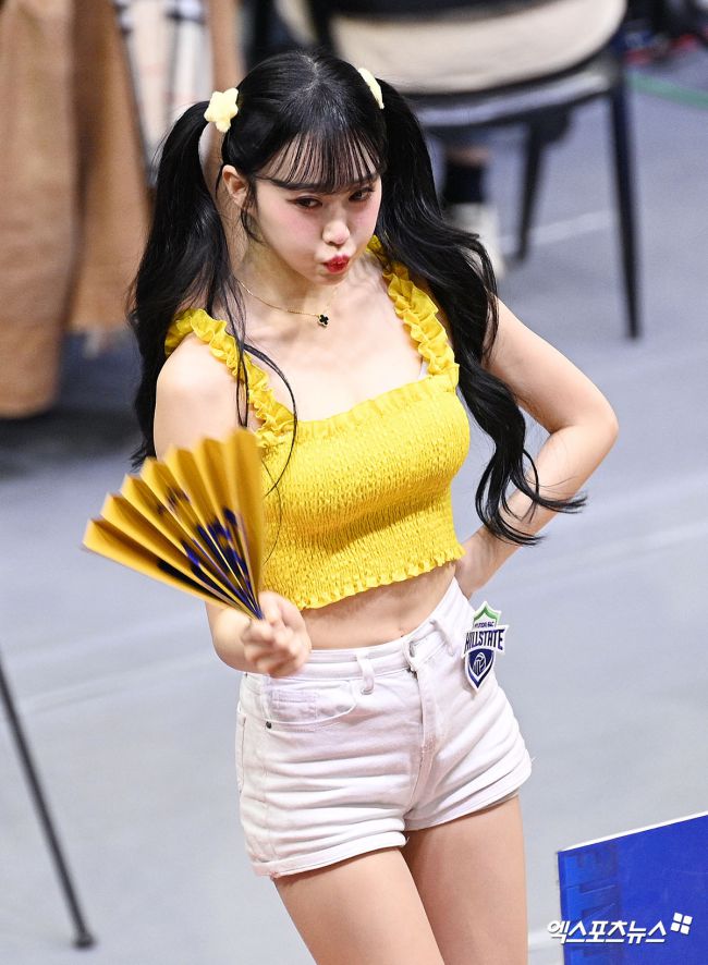 8일 오후 경기도 수원실내체육관에서 열린 '진에어 2025-2026 V-리그' 현대건설과 페퍼저축은행의 경기, 정가예 치어리더가 열띤 응원을 펼치고 있다. 고아라 기자 iknow@xportsnews.com