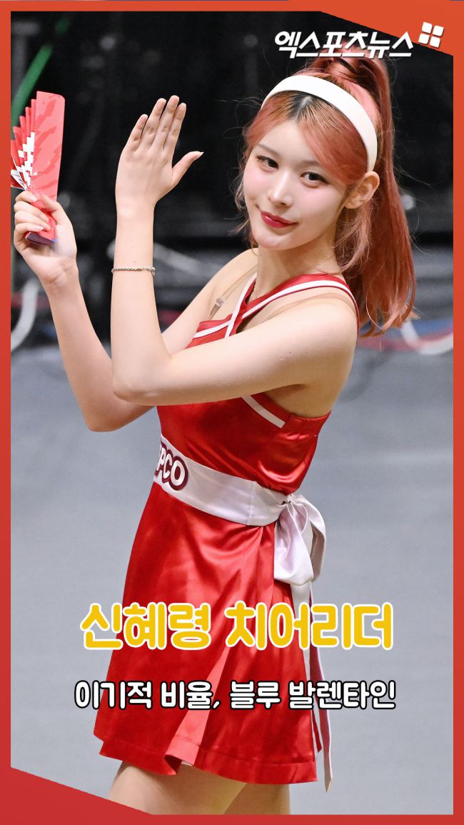 18일 오후 경기도 수원실내체육관에서 열린 '진에어 2025-2026 V-리그' 한국전력과 KB손해보험의 경기, 신혜령 치어리더가 멋진 공연을 선보이고 있다. 김한준 기자 kowel@xportsnews.com