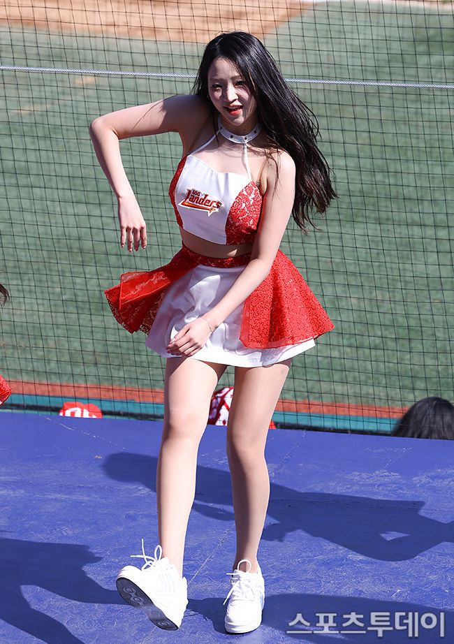 28일 인천 SSG랜더스필드에서 열린 2026 KBO리그 KIA 타이거즈와 SSG 랜더스의 경기, SSG 이연진 치어리더가 응원을 하고 있다. 2026.03.28. [스포츠투데이 팽현준 기자 sports@stoo.com]