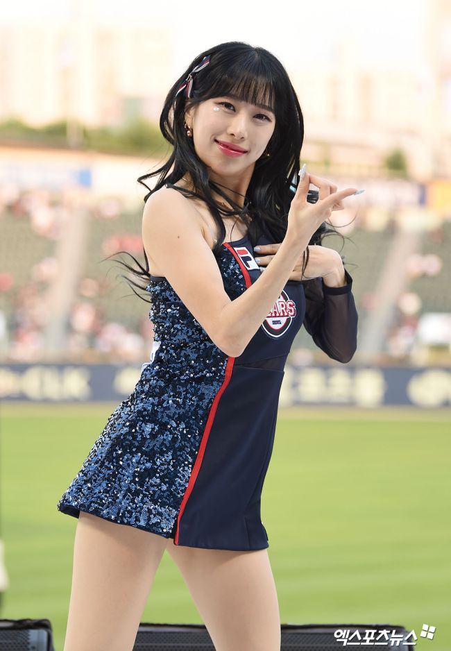 9일 오후 서울 송파구 잠실야구장에서 열린 '2023 신한은행 SOL KBO리그' KIA 타이거즈와 두산 베어스의 경기, 두산 치어리더가 멋진 공연을 선보이고 있다. 김한준 기자 kowel@xportsnews.com