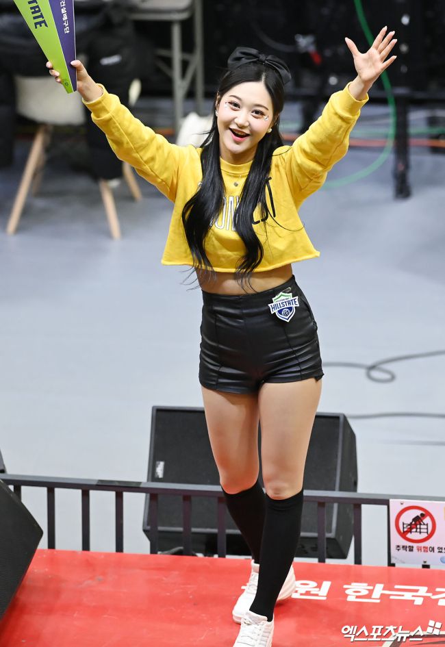 2일 오후 경기도 수원실내체육관에서 열린 ‘도드람 2023-2024 V-리그’ 현대건설과 정관장의 경기, 현대건설 치어리더 유세리가 열띤 응원을 선보이고 있다. 김한준 기자 kowel@xportsnews.com