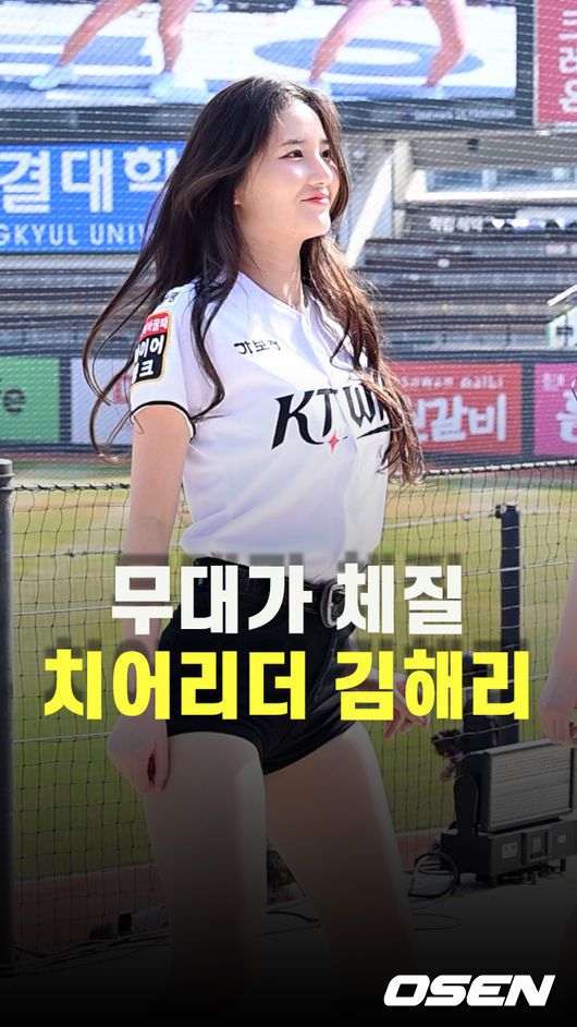 8일 오후 수원KT위즈파크에서 2025 신한 SOL뱅크 KBO 리그 시범경기 KT 위즈와 LG 트윈스의 경기가 열렸다. 치어리더 김해리가 공연을 펼치고 있다. 2005.03.08 /sunday@osen.co.kr