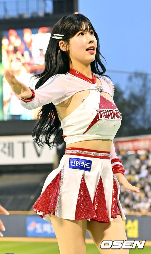 16일 서울 잠실야구장에서 2025 신한 SOL Bank KBO리그 LG 트윈스와 삼성 라이온즈의 경기가 열렸다. 이날 LG는 임찬규, 삼성은 최원태를 선발로 내세웠다 LG 박예은 치어리더가 화려한 공연을 펼치고 있다. 2025.04.16 / rumi@osen.co.kr