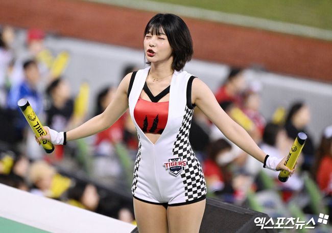 18일 오후 서울 송파구 잠실야구장에서 열린 '2025 신한 SOL Bank KBO리그' KIA 타이거즈와 두산 베어스의 경기, 천소윤 치어리더가 멋진 공연을 선보이고 있다. 김한준 기자 kowel@xportsnews.com