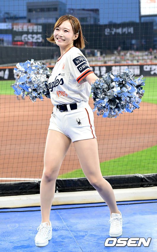 18일 오후 대전 한화생명 볼파크에서 ‘2025 신한 SOL Bank KBO리그’ 한화 이글스와 NC 다이노스의 경기가 열렸다. 이날 경기는 한화가 12-4 대승을 거두며 파죽의 5연승을 달렸다. 한화 치어리더 아야카가 응원 공연을 펼치고 있다. 2025.04.18 / dreamer@osen.co.kr