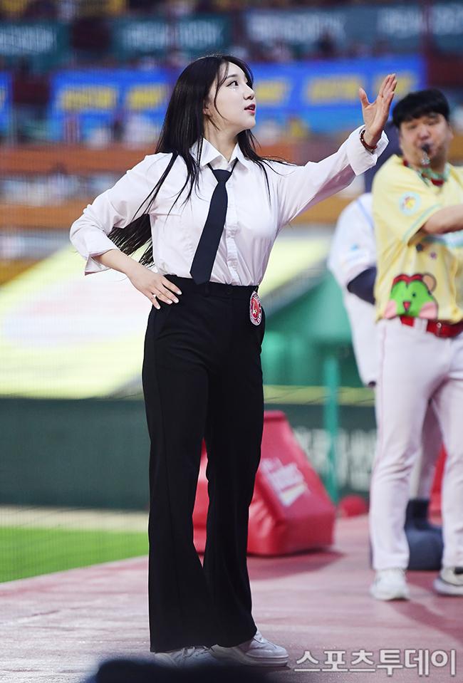 2025 신한은행 SOL Bank KBO리그 삼성 라이온즈와 SSG 랜더스의 경기가 29일 인천 SSG랜더스필드에서 열렸다. SSG 치어리더 김현영이 신나는 응원을 선보이고 있다. 2025.04.29. [스포츠투데이 권광일 기자 sports@stoo.com]