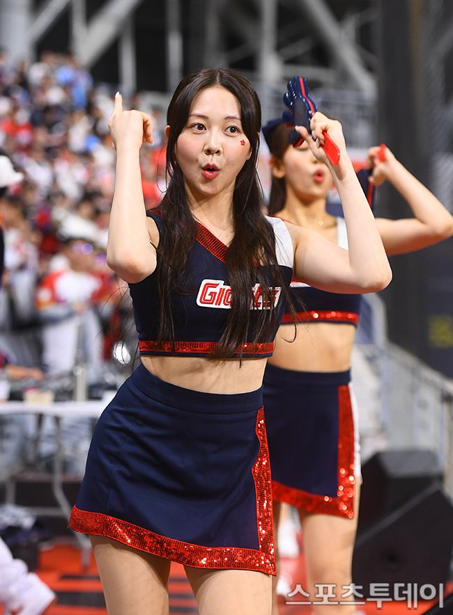 30일 서울 고척스카이돔에서 열린 2025 KBO리그 롯데 자이언츠와 키움 히어로즈의 경기, 김가현 롯데 치어리더가 응원하고 있다. 2025.04.30. [스포츠투데이 팽현준 기자 sports@stoo.com]