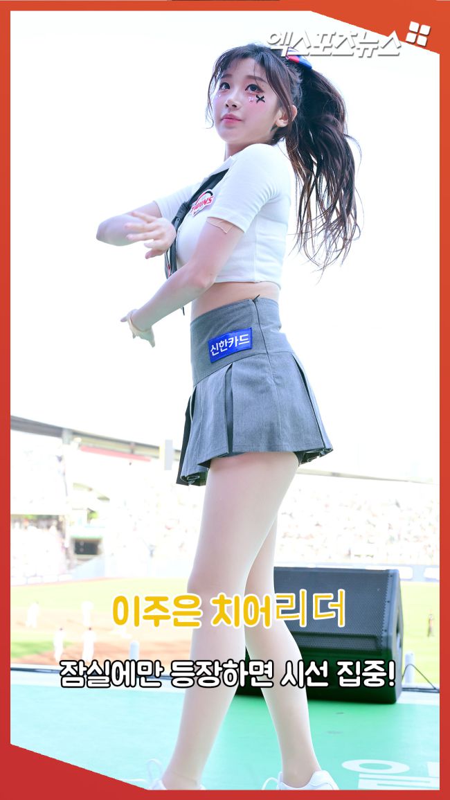 22일 오후 서울 송파구 잠실야구장에서 열린 '2025 신한 SOL Bank KBO리그' 두산 베어스와 LG 트윈스의 경기, 이주은 치어리더가 멋진 공연을 선보이고 있다. 김한준 기자 kowel@xportsnews.com