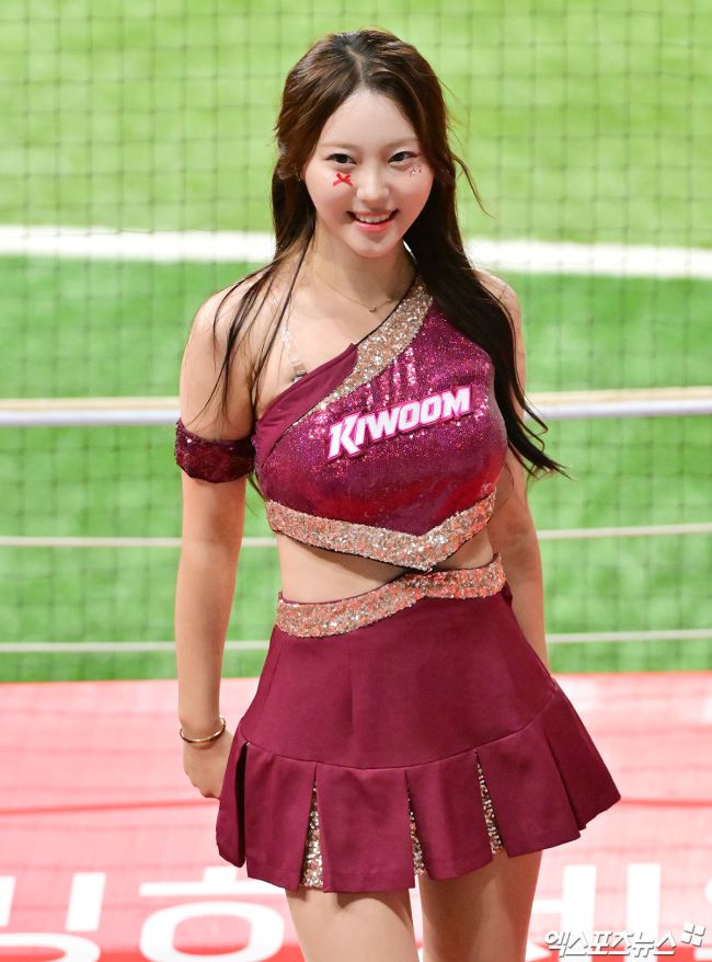 27일 오후 서울 구로구 고척스카이돔에서 열린 '2025 신한 SOL Bank KBO리그' 삼성 라이온즈와 키움 히어로즈의 경기, 송민교 치어리더가 멋진 공연을 선보이고 있다. 김한준 기자 kowel@xportsnews.com