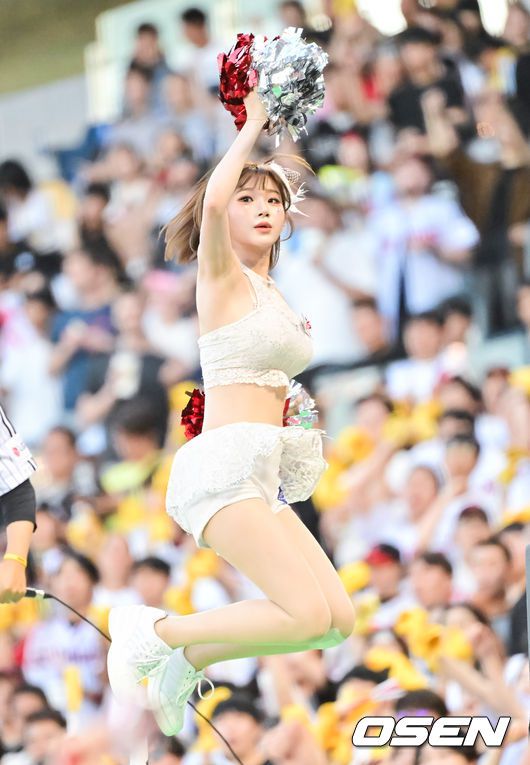 10일 오후 서울 잠실구장에서 ‘2025 신한 SOL BANK KBO리그’ LG 트윈스와 키움 히어로즈의 경기가 진행됐다. 이날 경기에서 LG는 송승기를, 키움은 알칸타라를 선발투수로 내세웠다. LG 이주은 치어리더가 응원을 펼치고 있다. 2025.07.10 / soul1014@osen.co.kr