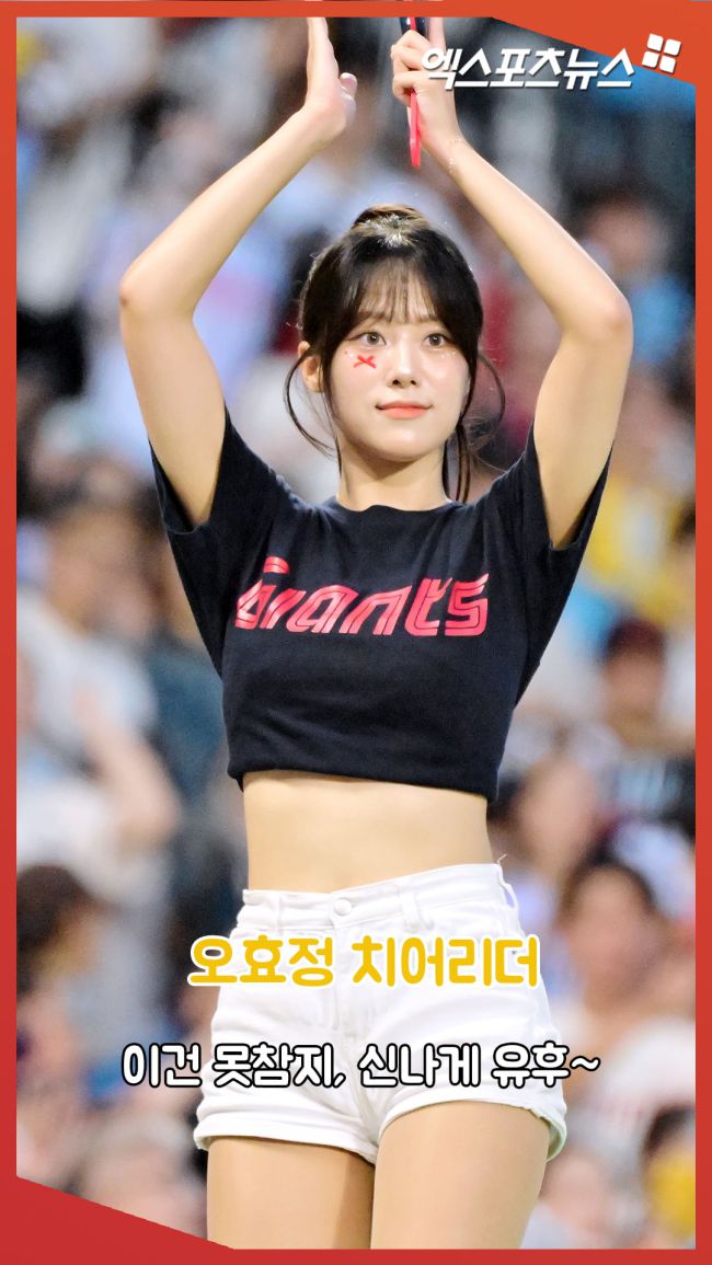 20일 오후 서울 송파구 잠실야구장에서 열린 '2025 신한 SOL Bank KBO리그' 롯데 자이언츠와 LG 트윈스의 경기, 롯데 오효정 치어리더가 열띤 응원을 선보이고 있다. 김한준 기자 kowel@xportsnews.com
