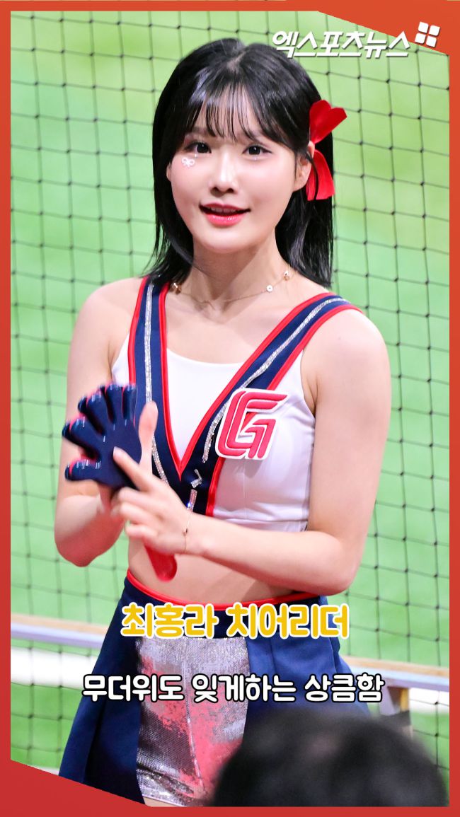 22일 오후 서울 구로구 고척스카이돔에서 열린 '2025 신한 SOL Bank KBO리그' 롯데 자이언츠와 키움 히어로즈의 경기, 롯데 최홍라 치어리더가 열띤 응원을 선보이고 있다. 김한준 기자 kowel@xportsnews.com