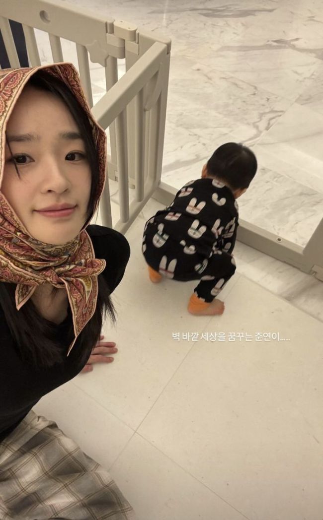 [서울=뉴시스] 손연재가 육아 근황을 밝혔다. (사진=손연재 인스타그램 캡처) 2025.04.11. photo@newsis.com *재판매 및 DB 금지 [서울=뉴시스] 신효령 기자 = 전 리듬체조선수 손연재(31)가 근황을 밝혔다. 손연재는 지난 10일 자신의 소셜미디어에 "벽 바깥 세상을 꿈꾸는 준연이"라고 적고 사진 한 장을 올렸다. 사진 속 손연재는