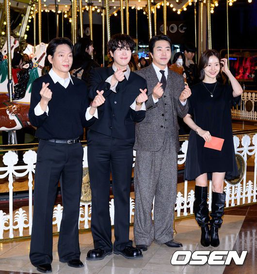 8일 오후 서울 잠실 롯데월드 회전목마에서 영화 '하트맨' 팬 이벤트가 열렸다. ‘하트맨’은 돌아온 남자 승민(권상우)이 다시 만난 첫사랑을 놓치지 않기 위해 고군분투하지만, 그녀에게 절대 말할 수 없는 비밀이 생기며 벌어지는 코미디로 오는 14일 전국 극장에서 개봉한다. 배우 박지환, 표지훈, 권상우, 문채원이 포토타임을 가지고 있다. 2026.01.08