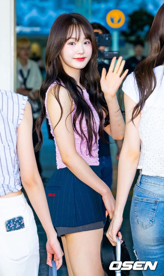 그룹 우아(WOOAH)가 26일 오전 인천국제공항을 통해 해외 일정 참석차 출국했다. 이날 그룹 우아(WOOAH- 나나, 우연, 소라, 루시, 민서)는 해외 팬사인회 일정 참석 차 중국 상하이로 출국했다. 우아의 나나가 출국길에 포즈를 취하고 있다. 2025.07.26 / rumi@osen.co.kr