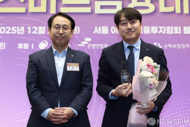 [서울=뉴스핌] 최지환 기자 = 조윤서 여신금융협회 본부장이 23일 오전 서울 영등포구 금융투자협회에서 뉴스핌 주최로 열린 2025 뉴스핌 스마트금융대상에서 김준식 신한카드 멤버십본부장에게 디지털상품 리더상을 시상한 후 함께 기념촬영을 하고 있다. 2025.12.23 choipix16@newspim.com [서울=뉴스핌] 최지환 기자 = 조윤서 여신금융협회