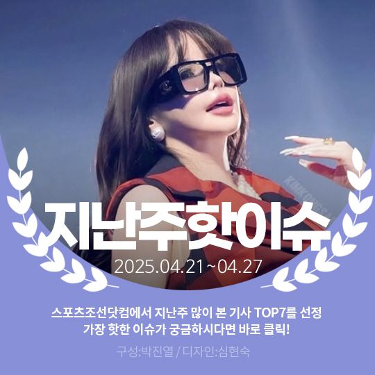 매주 월요일 한 주 전에 온라인에서 큰 화제가 되었던 기사들을 정리해 알려주는 '지난주 핫이슈'입니다. 지난주에는 그룹 2NE1 박봄이 필터 없는 미모를 뽐냈다는 기사가 가장 큰 인기를 얻었습니다. 박봄은 지난 21일 자신의 계정에 "박봄 무대 위에서 마이크를 들고"라며 사진을 게재했습니다. 공개된 사진은 2NE1 앙코르 콘서트 '웰컴백' 무대에 오른 박봄