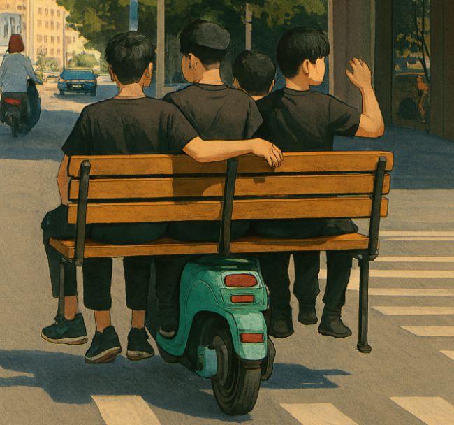 [서울신문 나우뉴스] 중국 내몽골에서 중학생 4명이 벤치를 얹은 공유 전동스쿠터를 타고 도로를 질주해 논란이 됐다. 코파일럿 지난 8일 중국 내몽골의 한 도시에서 믿기 힘든 광경이 목격됐다. 네 명의 중학생이 전동 스쿠터에 긴 나무 벤치를 싣고 도로 위를 달린 것이다. 서커스의 한 장면을 연상시키는 이 위험천만한 질주는 보는 이들의 간담을 서늘하게 만들었다