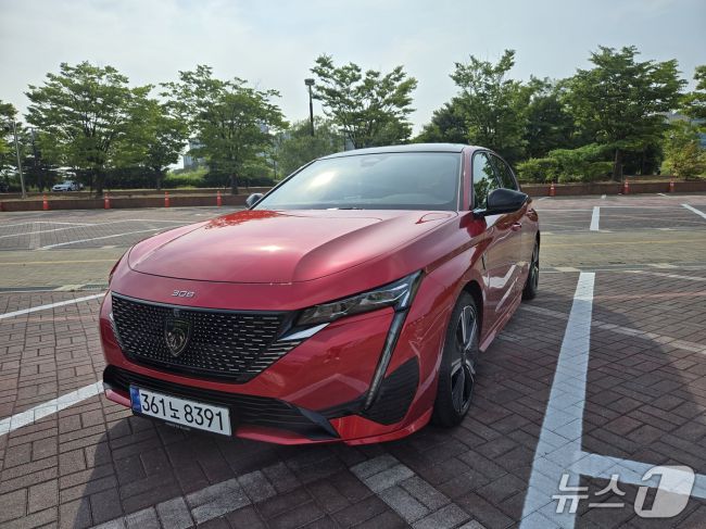 12일 경기 고양 일산서구에서 촬영한 푸조 준중형 해치백 '308 스마트 하이브리드' GT 트림의 모습. 2025.07.12/뉴스1 김성식 기자 (서울=뉴스1) 김성식 기자 = 프랑스 푸조를 대표하는 준중형 해치백 '308'이 지난 4월 마일드하이브리드(MHEV) 모델로 한국 시장에 상륙했다. 그간 판매됐던 디젤 모델과 달리 가솔린 엔진과 전기 모터를 결합