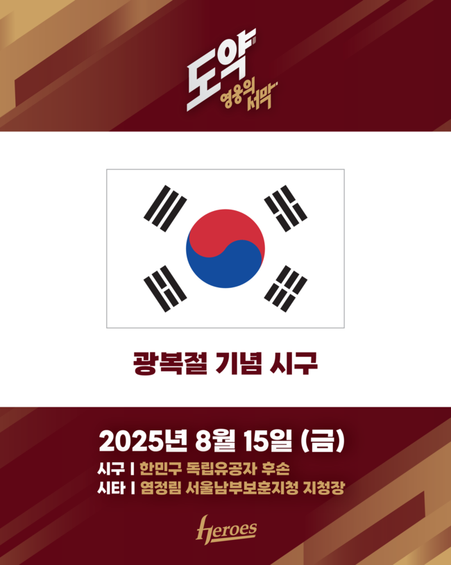 [내야외야] 키움, 15일 KT전 광복절 기념 시구 및 시타 진행