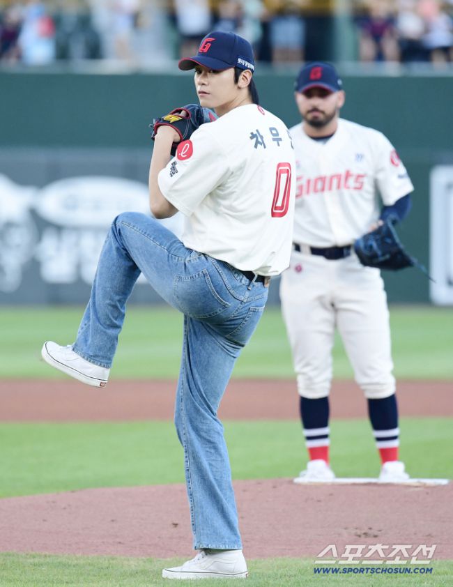 17일 부산 사직구장에서 열린 롯데와 삼성의 경기. 시구를 하고 있는 부산 출신 배우 차우민. 부산=송정헌 기자songs@sportschosun.com/2025.08.17/ 17일 부산 사직구장에서 열린 롯데와 삼성의 경기. 시구를 하고 있는 부산 출신 배우 차우민. 부산=송정헌 기자songs@sportschosun.com/2025.08.17/
