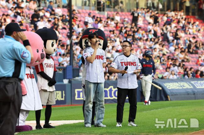 [서울=뉴시스] 최진석 기자 = 배우 김재원이 21일 서울 송파구 잠실야구장에서 열린 프로야구 '2025 신한 SOL 뱅크 KBO리그' 롯데 자이언츠와 LG 트윈스의 경기에서 시구에 앞서 발언하고 있다. 2025.08.21. myjs@newsis.com [사진 영상 제보받습니다] 공감언론 뉴시스가 독자 여러분의 소중한 제보를 기다립니다. 뉴스 가치나 화제성