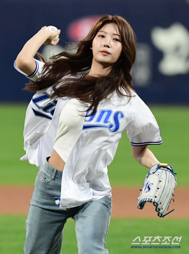 23일 대구 삼성라이온즈파크에서 열린 KBO리그 삼성과 두산의 경기. 걸그룹 '에버글로우' 멤버 시현, 아샤가 시구-시타를 했다. 시구를 하고 있는 시현. 대구=송정헌 기자songs@sportschosun.com/2025.09.23/ 23일 대구 삼성라이온즈파크에서 열린 KBO리그 삼성과 두산의 경기. 걸그룹 '에버글로우' 멤버 시현, 아샤가 시구-시타를