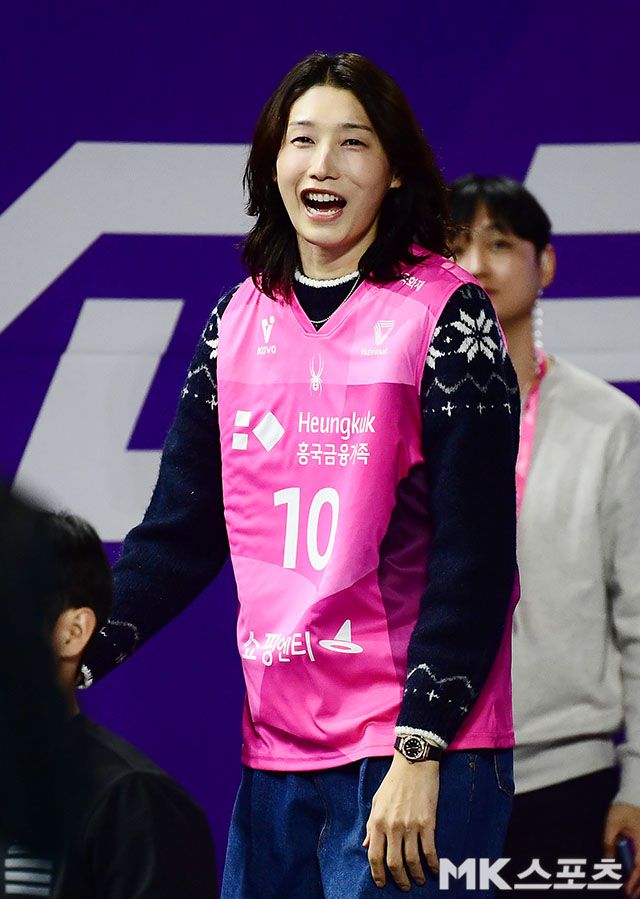 24일 오후 인천 삼산월드체육관에서 ‘진에어 2025~2026 V리그’ 여자부 흥국생명과 IBK기업은행 경기가 열렸다. 흥국생명은 8승 8패 승점 25점으로 리그 3위, 기업은행은 6승 10패 승점 21점으로 5위다. 경기에 앞서 흥국생명 어드바이저 김연경이 승리 기원 시구에 나서고 있다. 인천=김영구 MK스포츠 기자 [ⓒ MK스포츠, 무단전재 및 재배포