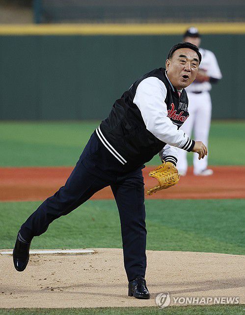 (울산=연합뉴스) 김용태 기자 = 20일 울산 문수야구장에서 열린 프로야구 KBO 퓨처스(2군)리그 울산 웨일즈의 창단 첫 홈 개막전에서 김두겸 울산시장이 시구하고 있다. 2026.3.20 yongtae@yna.co.kr ▶제보는 카카오톡 okjebo ▶연합뉴스 앱 지금 바로 다운받기~ ▶네이버 연합뉴스 채널 구독하기 <저작권자(c) 연합뉴스, 무단 전재-