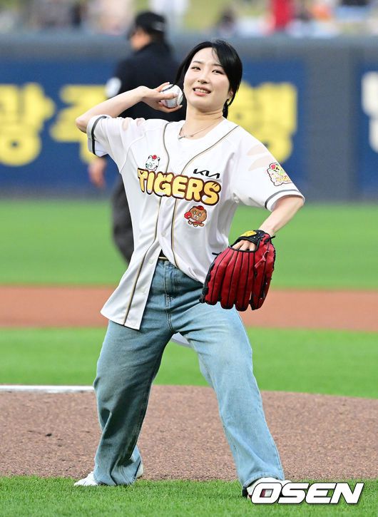 16일 광주-기아 챔피언스필드에서 KIA 타이거즈와 키움 히어로즈의 경기가 열렸다. 7연승을 노리는 KIA는 제임스 네일, 최하위 키움은 알칸타라를 선발로 내세웠다. 쇼트트랙 국가대표 김길리가 시구를 하고 있다. 2026.04.16/ jpnews@osen.co.kr