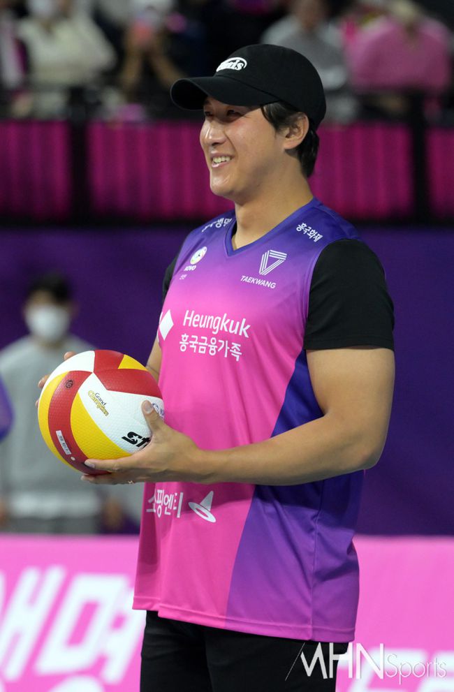 29일 오후 인천 삼산체육관에서 '2022-23시즌 도드람 V-리그' 여자부 챔피언결정전 1차전이 열렸다. 이날 야구선수 황재균이 시구에 나섰다.