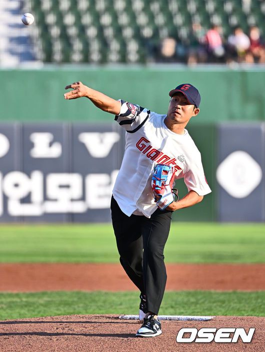 28일 부산 사직구장에서 2023 신한은행 SOL KBO리그 롯데 자이언츠와 한화 이글스의 경기가 열렸다. 골프 선수 박은신이 시구를 하고 있다. 2023.09.28 / foto0307@osen.co.kr
