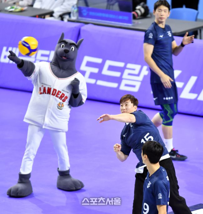 SSG 좌완투수 고효준이 10일 계양체육관에서 열린 2023 도드람 V리그 남자부 대항항공과 KB손해보험과의 경기에서 시구를 하고 있다. 2023.12.10.인천 | 강영조기자 kanjo@sportsseoul.com [기사제보 news@sportsseoul.com] Copyright ⓒ 스포츠서울&sportsseoul.com