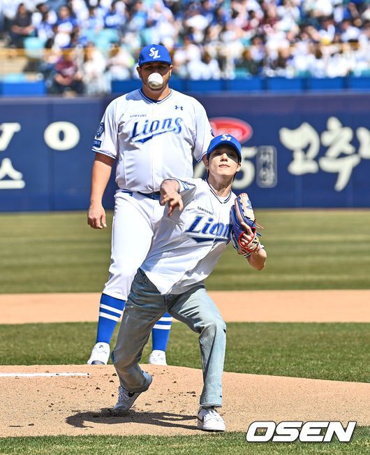 22일 대구삼성라이온즈파크에서 2025 신한 SOL 뱅크 KBO 리그 삼성 라이온즈와 키움 히어로즈의 경기가 열렸다. 홈팀 삼성은 후라도가 방문팀 키움은 로젠버그가 선발 출전했다. NCT 제노가 시구를 하고 있다. 2025.03.22 / foto0307@osen.co.kr