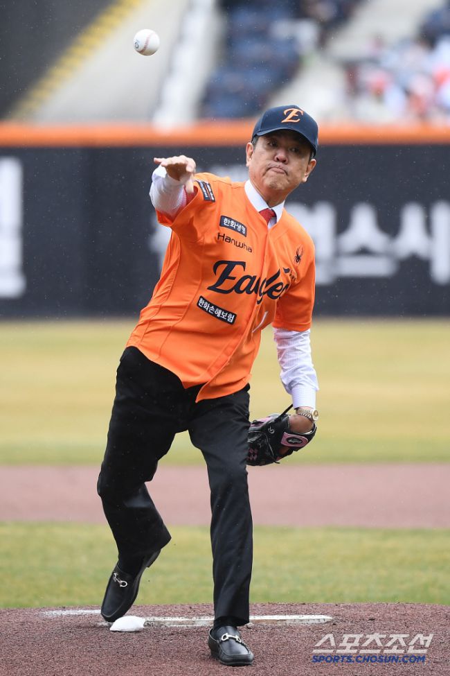 29일 대전 한화생명볼파크에서 열린 KIA-한화전. 고 김영덕 전 감독의 아들 김성규씨가 시구하고 있다. 대전=정재근 기자 cjg@sportschosun.com/2025.3.29/ 29일 대전 한화생명볼파크에서 열린 KIA-한화전. 고 김영덕 전 감독의 아들 김성규씨가 시구하고 있다. 대전=정재근 기자 cjg@sportschosun.com/2025.3.29