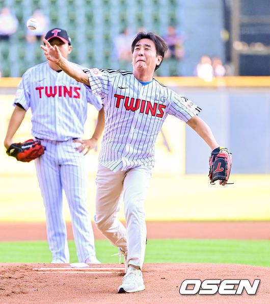 10일 오후 서울 잠실구장에서 ‘2025 신한 SOL BANK KBO리그’ LG 트윈스와 키움 히어로즈의 경기가 진행됐다. 이날 경기에서 LG는 송승기를, 키움은 알칸타라를 선발투수로 내세웠다. 경기에 앞서 배우 류승룡이 시구를 하고 있다. 2025.07.10 / soul1014@osen.co.kr