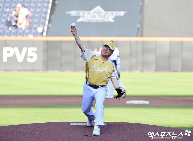 11일 오후 대전한화생명볼파크에서 열린 '2025 신한 SOL Bank KBO 퓨처스 올스타전' 남부리그와 북부리그의 경기에 앞서 이장우 대전시장이 시구를 하고 있다. 박지영 기자 jypark@xportsnews.com